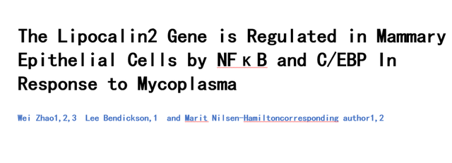 Zhao, W., Bendickson, L. & Nilsen-Hamilton, M. The Lipocalin2 Gene is Regulated in Mammary Epithelial Cells by NFκB and C/EBP In Response to Mycoplasma. Sci Rep 10, 7641 (2020).